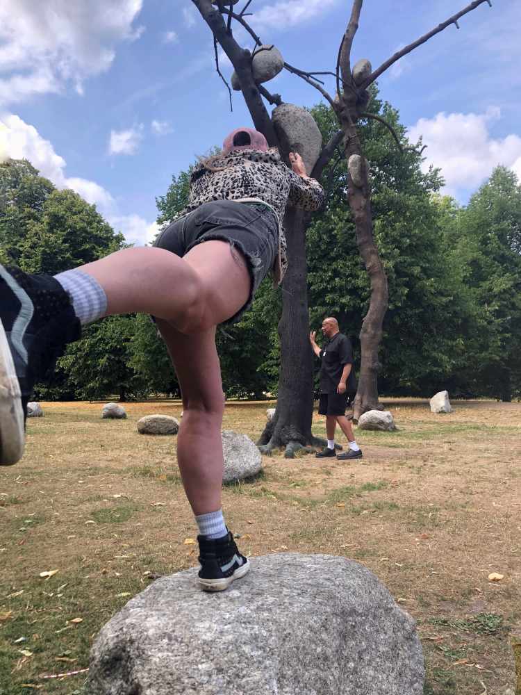 now let’s see if you can make it look like I am reaching for one of the tree rocks